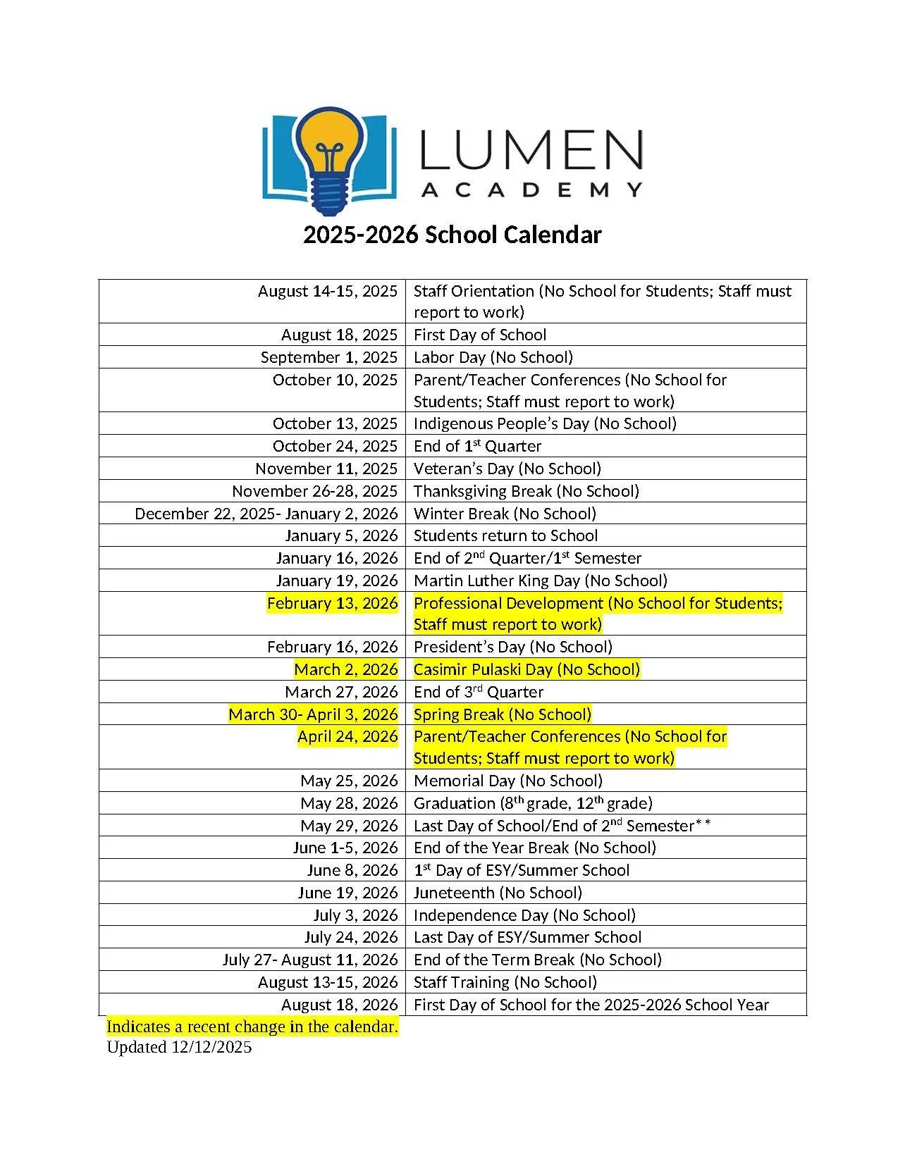 Calendar for 2025-26